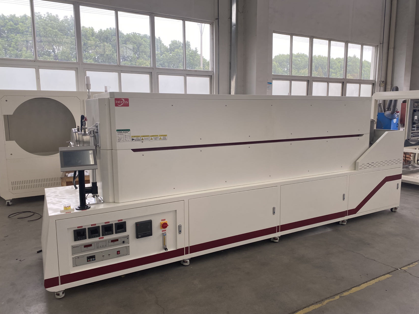 该设备是我公司专门用医疗导丝行业研发的一款生产型高真空快速退火炉,主要用于导丝的退火、热定型等工艺;